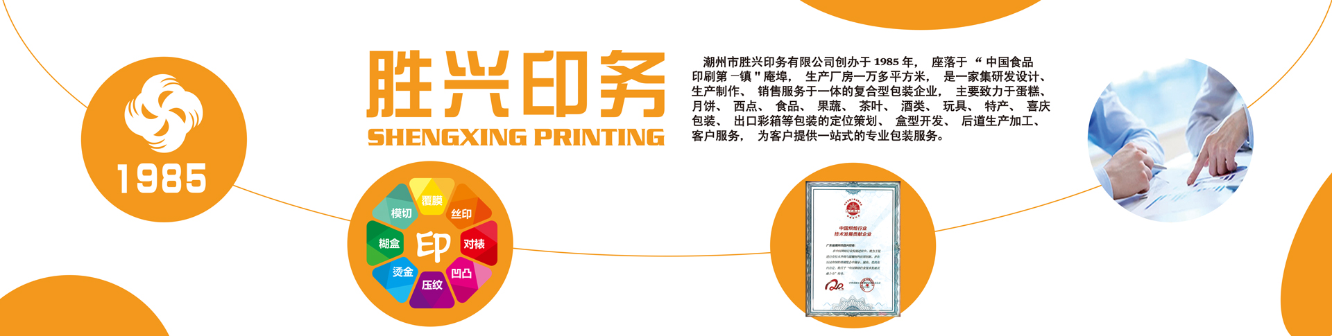 潮州市勝興印務有限公司創辦于1985年,座落于“中國食品印刷第—鎮”庵埠鎮,多年來一直從事包裝印刷行業,擁有德國印刷機多臺及配套,專業生產蛋糕包裝、月餅包裝、年畫及各種吉祥物品。勝興的成功,有賴于才干卓越、盡心盡力的員工。本廠注重技術人才隊伍的建設,擁有技術性強的各類專業印刷人員。成熟的生產技術及優質的服務使我們得到了良好的聲譽和信任。